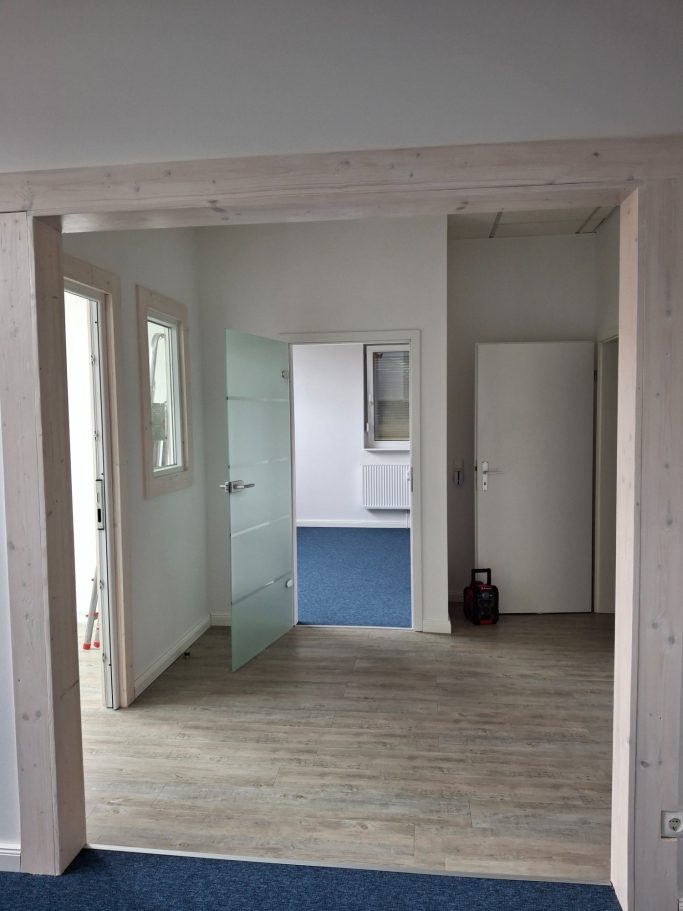 Die Wände gestrichen ,Teppisch + Leisten ,Beleuchtung einbauen,Türen ausgetaucht etc.(Praxis in Stade)